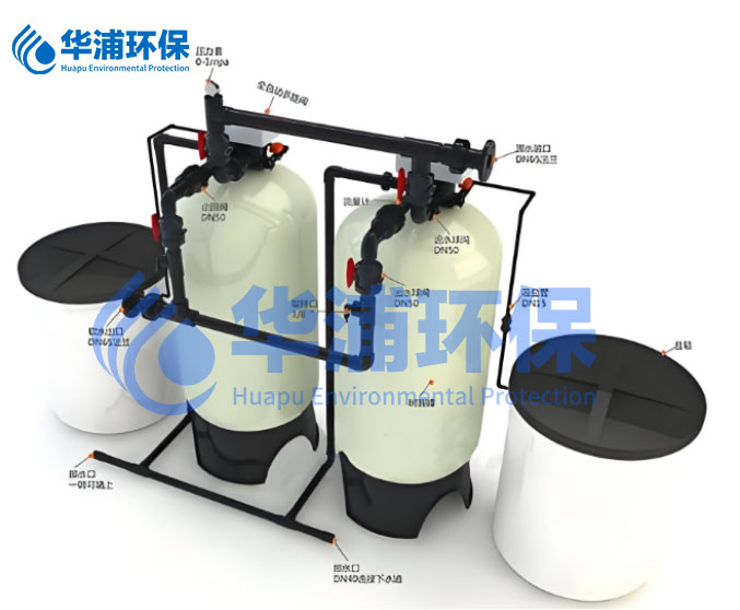 全自動軟化水處理器主要由樹脂罐、全自動多路控制閥和鹽箱三個主要部分組成。樹脂罐內(nèi)裝填離子交換樹脂,用于吸附水中的鈣、鎂離子;多路控制閥是軟化水處理設(shè)備的控制器,控制系統(tǒng)自動完成運行、再生、清洗、排污以及鹽箱補水的循環(huán)過程。鹽箱則用于儲存食鹽,以便在樹脂再生時使用。
